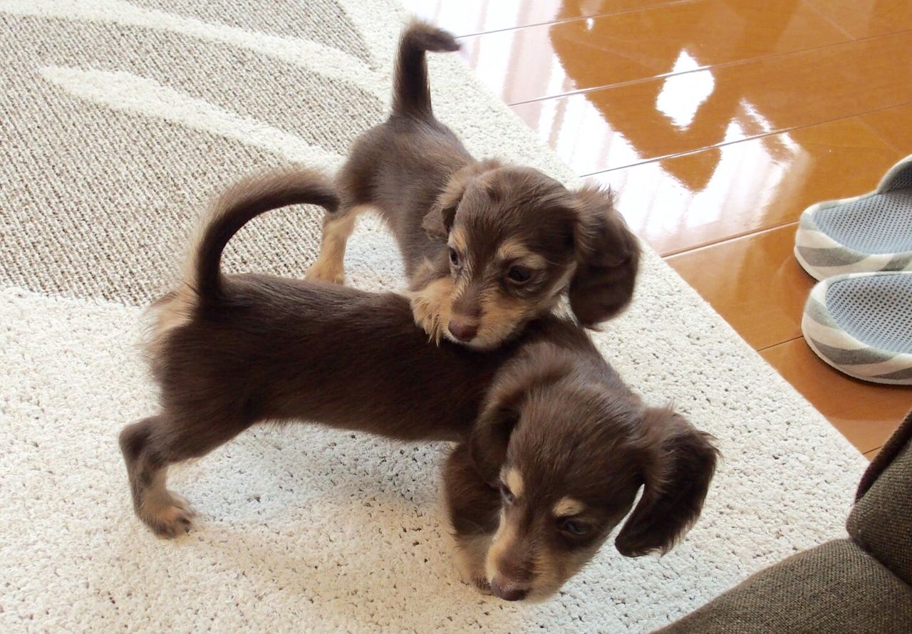 なかよく遊ぶブルーとこむぎくん、体格の違い、歴然です。