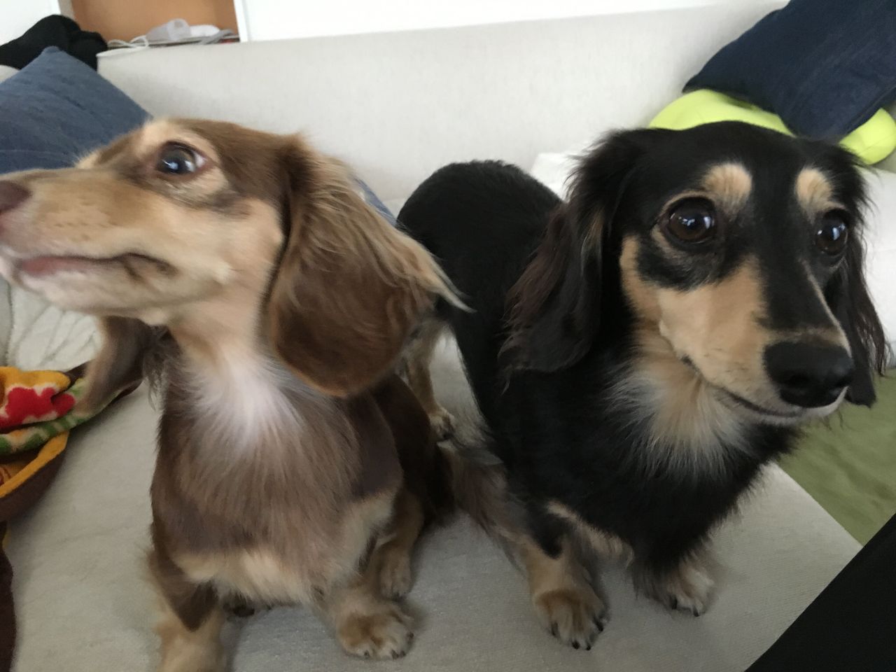 そもそも、ビビが吠えるから真似したんだよ〜。ビビはパピーの頃に吠えちゃったので、しつけました。今ではビビは吠えちゃう時と、吠えない時とあり、止めればやめてくれます。