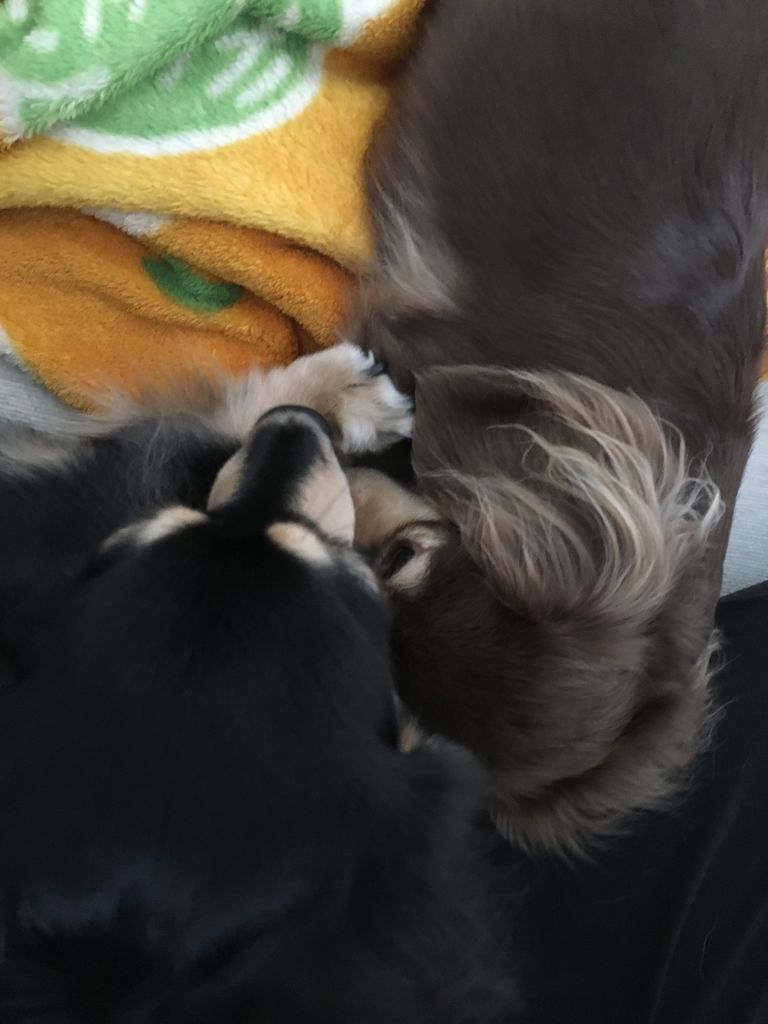 ワンちゃんは家族で序列をつける時に、子供は自分より格下、もしくは同等、兄弟みたいな位置付けをするものですが(ビビにとってねぇねは同等ポジション)、ブルーにとってのねぇねは、わたしと同じくらいのポジションのようです。