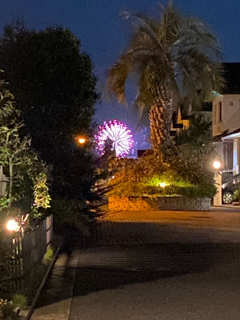 夜。家の前から花火見物。