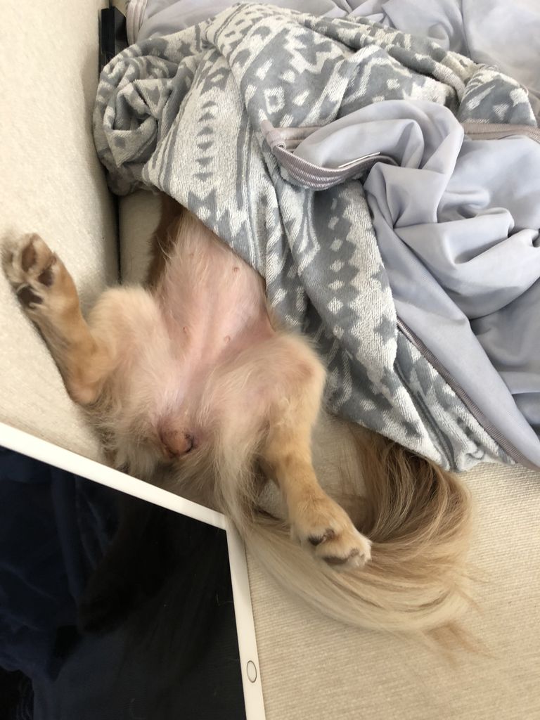 そんな忙しいわたしをよそにブルーの自由すぎる格好🤣