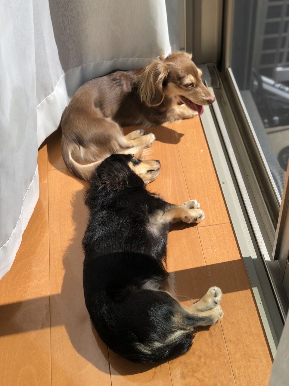 そのうち窓辺に移動してましたが、日が当たるので暑くなってしまった様子。